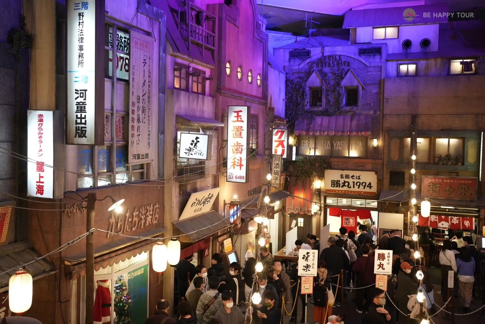 ไฮไลท์ของพิพิธภัณฑ์ราเมงที่นี่ คือ ย่านราเมง ในพื้นที่ชั้นใต้ดินทั้งสองชั้นของตัวพิพิธภัณฑ์ ที่จัดแสดงนิทรรศการ สถาปัตยกรรมทุกอย่าง ภายในจะตกแต่งเป็นย้อนยุคทั้งหมด ไม่ว่าจะเป็นร้านค้า โต๊ะ เก้าอี้นั่ง ที่มีความดีไซน์ให้อยู่ในบรรยากาศของเมืองชิตามาชิ ช่วงปี ค.ศ. 1958 ซึ่งเป็นยุคจุดกำเนิดของราเมง และมีมุมมหาชนที่สวยงานแบบย้อนยุค