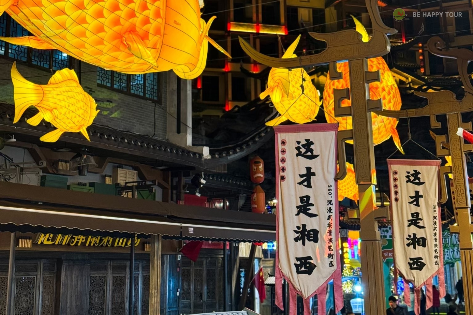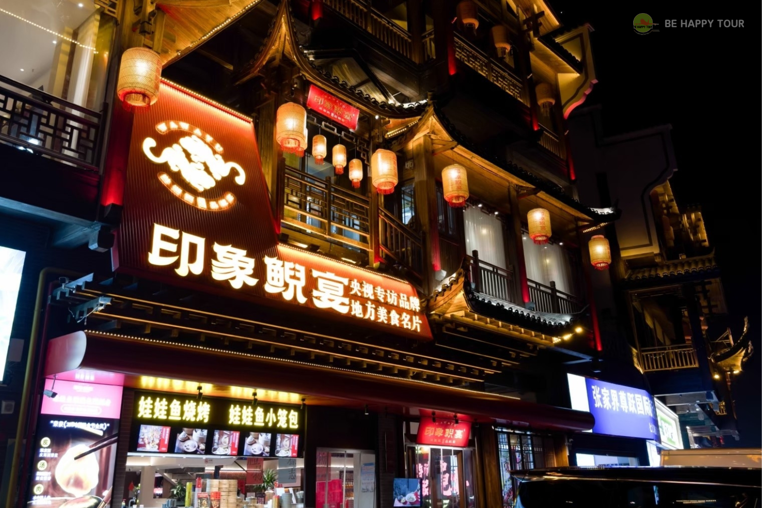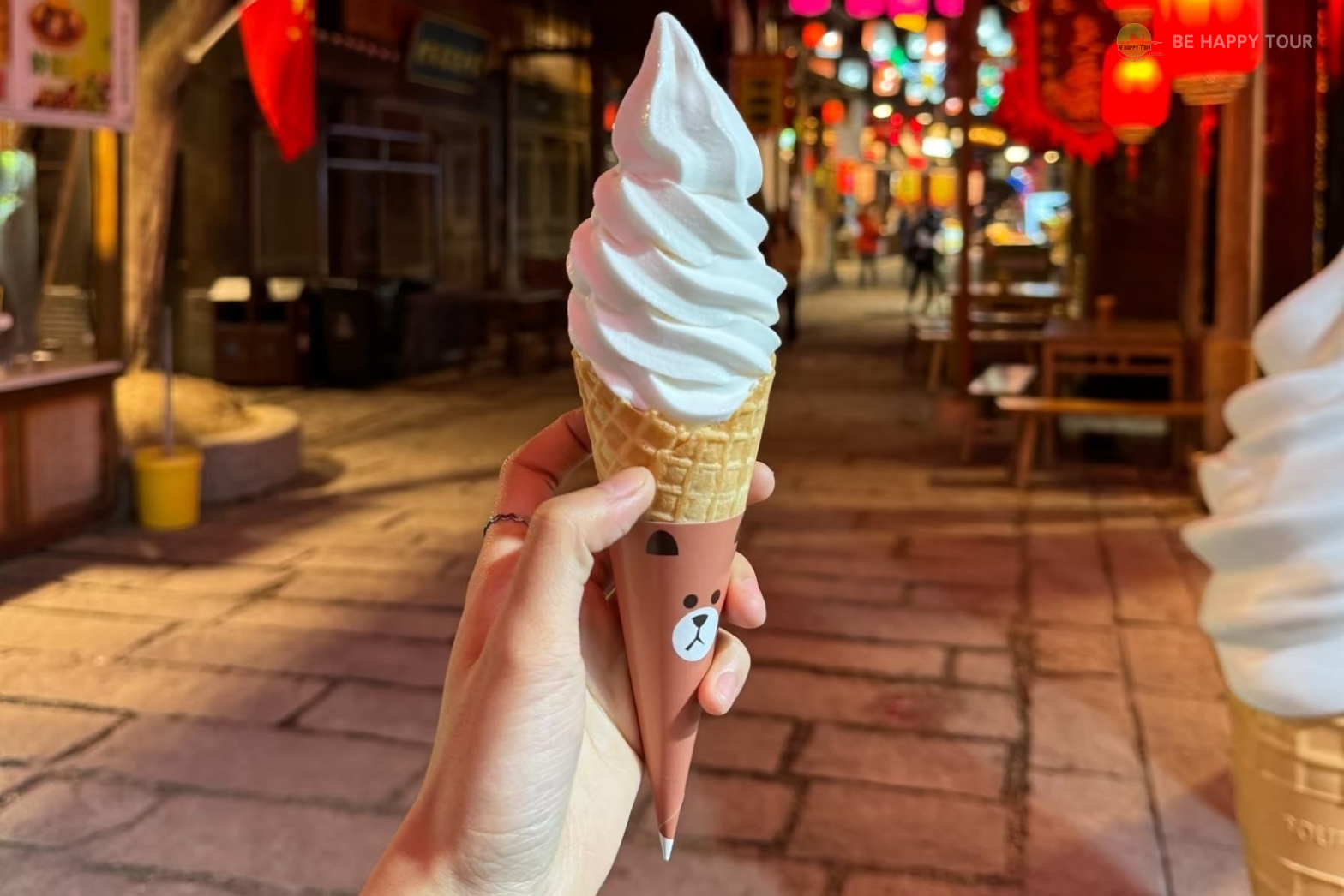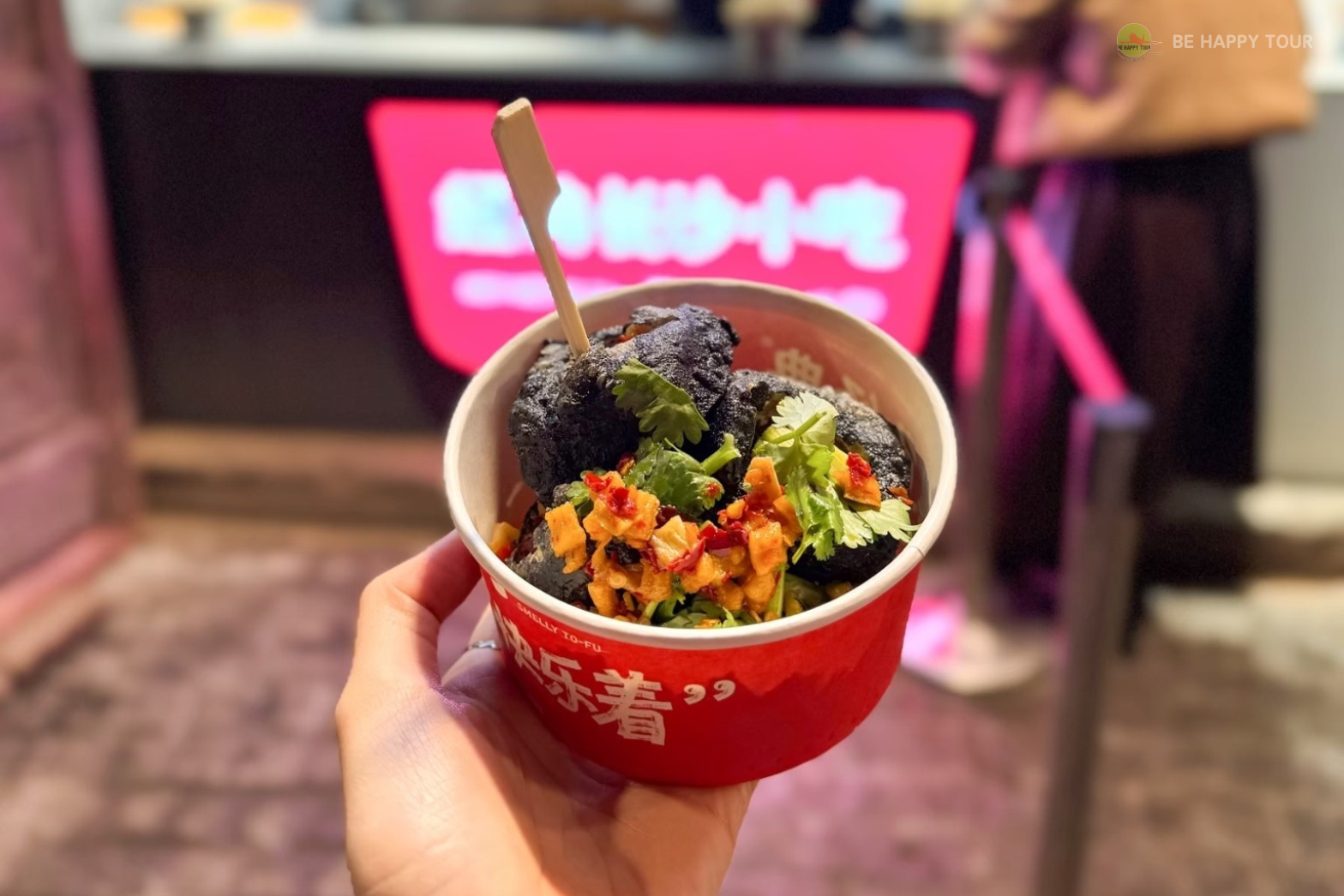 ใช่ค่ะ แล้วเราก็ได้ซื้อเต้าหู้เหม็นสไตล์หูหนานโรยหน้าด้วยพริกและหอมซอย กับ ไอศกรีมที่แสนหวานเย็น อร่อยสุดๆ ที่นี่มีการแสดงเป็นจุดจุดไป ทางออกก็จะอยู่ด้านขวามือ