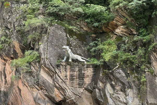 ตามตำนานกล่าวว่า มีเสือตัวหนึ่งได้หนีการตามล่าจากนายพราน โดยกระโดดข้ามแม่น้ำที่จุดที่แคบที่สุด (กว้าง 25 เมตร) จึงเป็นที่มาของชื่อของช่องเขาแห่งนี้