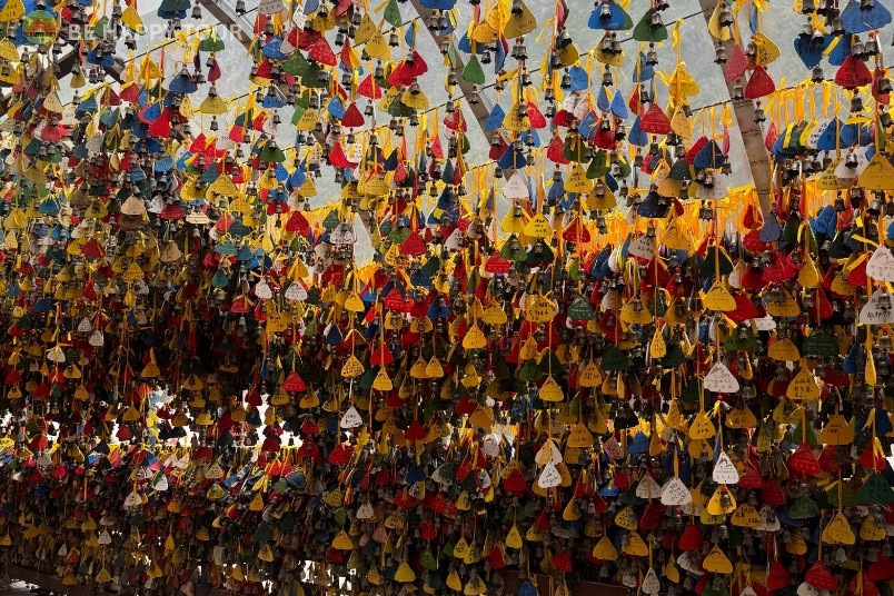 ด้านล่างสุดของช่องเขาเสือกระโจน จะมีสะพานยาวเลียบตามแม่น้ำ เดินไปครึ่งทางจะเจอ อุโมงค์กระดิ่ง ไว้แขวนคำอธิฐาน เดินต่อไปสุดทางจะเจอลานแขวนคำขอพรอีกหนึ่งแห่ง และมีรูปปั้นเสือที่เป็นจุดแลนด์มาร์คของหุบเขาเสือกระโจนแห่งนี้