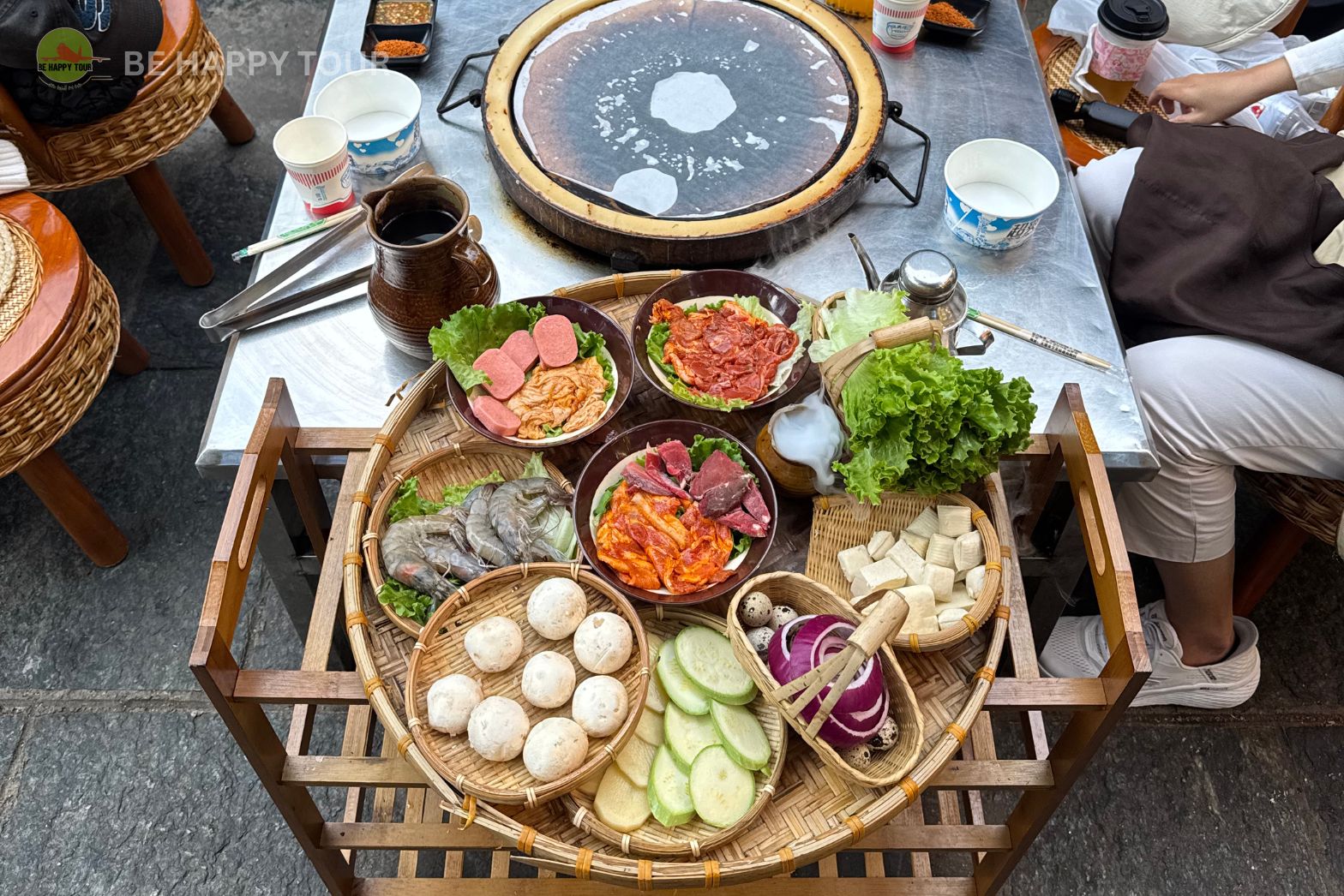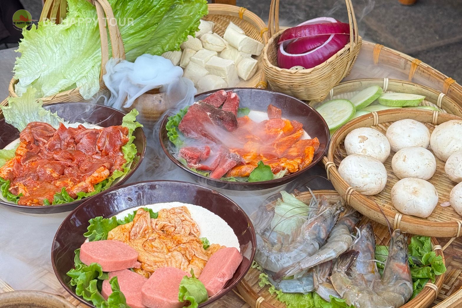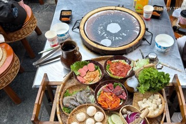 อาหารที่ได้รับความนิยมมากที่สุดในเมืองโบราณคือบาร์บีคิวหินชนวนของกลุ่มชาติพันธุ์ไป๋ ส่วนอาหารที่แนะนำมากที่สุดคือบาร์บีคิวหินชนวนของชาวประมงโบราณ นี่ดูเหมือนจะเป็นร้านเก่าที่เปิดมานานหลายปีแล้ว ได้รับการแนะนำจากเพื่อน ถึงจะเป็นเตาย่างไฟฟ้าแทนที่จะเป็นเตาถ่าน แต่ทั้งสองอย่างก็มีรสชาติที่เป็นเอกลักษณ์ของตัวเอง