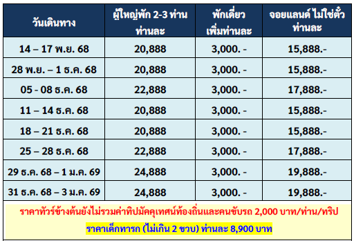 เดินทาง พ.ย. - ธ.ค. 68 | โดยสายการบิน AIR ASIA (FD) | • เยือนเมือง "ฝูหรง" นครบนธารา • ยลแสงสุดท้าย สาดส่องมา • แวะถิ่นชาว "ม้ง" ทรงวัฒนธรรม • งามล้ำ "เฟิ่งหวง" ดั่งหงส์สวรรค์ • ข้าม "สะพานรุ้ง" มุ่งสู่ถนนหิน • ช้อปเพลินเดินฟิน ชิมของอร่อยพลัน • นั่ง "รถไฟไว" วาร์ปไปในเร็ววัน • สู่เมือง "ฉางซา" นั้น แหล่งชิคอินเทรนด์ • ช้อป POPMART ใหญ่ ใครๆ ก็ไปเห็น • สี่วันสุดเฟี้ยว เที่ยวเป็นต้องเก็บ
