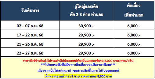 เดินทาง ธ.ค. 68 | โดยสายการบิน THAI LION AIR (SL) | • หุบเขาเทวดาวั่งเซียนกู่ ชมบ้านเรือนโบราณที่แขวนตัวอยู่บนหน้าผาสุดอลังการ • หมู่บ้านหวงหลิง ขึ้นกระเช้าสู่หมู่บ้านบนไหล่เขาที่งดงามที่สุด • อู้หนี่โจว: ล่องเรือยามค่ำคืนในเมืองโบราณที่ไม่เคยหลับใหล • เขาหลูซาน สัมผัสไอหมอกและบรรยากาศสุดโรแมนติกที่ราวกับบทกวี • จิ่งเต๋อเจิ้น เยือนเมืองหลวงแห่งเครื่องเคลือบ ศิลปะและประวัติศาสตร์ที่สืบทอดมานับพันปี