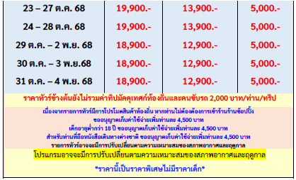 หมวดหมู่ : ทัวร์แนะนำ ,  ประเภททัวร์ ,  ลงร้านช้อป ,  โดยสายการบิน ,  AIR ASIA (FD) ,  วันแม่ ,  วันคล้ายวันสวรรคคต ร.9 ,  ทัวร์เทศกาล ,  วันปิยมหาราช ,  China ,  Chengdu ,