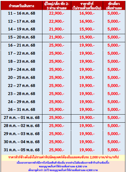 เดินทาง ต.ค. 68 | โดยสายการบิน AIR ASIA (FD) | • เฉิงตู - อุทยานปี้เผิงโกว (รวมรถอุทยาน) • เมืองตูเจียงเยี่ยน • อุทยานสี่ดรุณี เส้นทางหุบเขาซวงเฉียวโกว (รวมรถอุทยาน) • สะพานโบราณหนานเฉียว (Blue Tears) • ร้านยาสมุนไพรจีน • ศูนย์อนุรักษ์หมีแพนด้า (รวมรถกอล์ฟ) • จตุรัสหยางเทียนหวู่ • รูปปั้นหมีแพนด้านอนเซลฟี่ • ร้านหนังสือจงซูเก๋อ • Tower of Life SKP • ร้านหมอนโอโซน • ศูนย์ผลิตภัณฑ์ผ้าไหม • ถนนคนเดินชุนซีลู่ • หมีแพนด้ายักษ์ปีนตึก IFS + ร้าน POP MART • ถนนไท่กู่หลี่