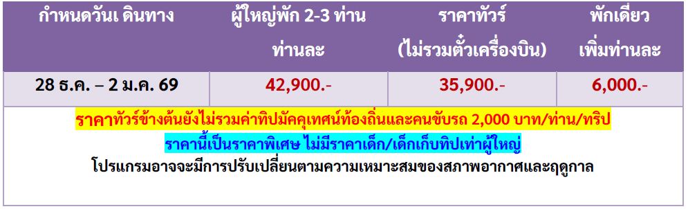 เดินทาง ธ.ค. 68 | โดยสายการบิน AIR CHINA (CA) | • Count Down ปีใหม่ เซี่ยงไฮ้ - ปักกิ่ง เที่ยว 2 สวนสนุก UNIVERSAL STUDIO BEIJING และ Shanghai Disneyland เต็มวัน (รวมค่าบัตรเข้า + รถรับส่ง) • วัดพระหยกขาว • ตลาดร้อยปีเฉินหวังเมี่ยว • ลอดอุโมงค์เลเซอร์ • ถ่ายรูปหอไข่มุก • ช้อปปิ้งถนนนานกิง + Miniso Land • นั่งรถไฟความเร็วสูงสู่เมืองปักกิ่ง • จตุรัสเทียนอันเหมิน • พระราชวังต้องห้ามกู้กง • ถนนคนเดินหวังฝูจิ่ง • ย่านซานหลี่ถุน • พระราชวังฤดูร้อน • กำแพงเมืองจีนด่านจวียงกวน