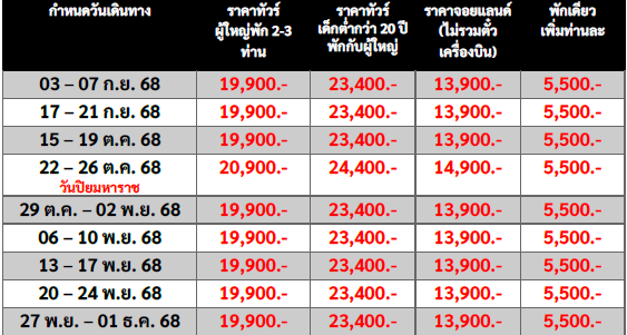 เดินทาง ก.ย. - ธ.ค. 68 | โดยสายการบิน AIR CHINA (CA) | • เยี่ยมชมจัตุรัสที่ใหญ๋ที่สุดในโลก จัตุรัสเทียนอันเหมิน • สัมผัสประสบการณ์ขึ้นกำแพงเมืองจีน ด่านจวียงกวน • ช้อปปิ้งถนนหวังฝูจิ่ง และซานหลี่ถุน • วัดพระเขี้ยวแก้ว • เมืองใต้ดินเหอผิงจวี๋ • พระราชวังฤดูร้อน