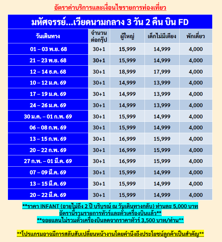 หมวดหมู่ : ประเภททัวร์ ,  ไม่ลงร้านช้อป ,  โดยสายการบิน ,  AIR ASIA (FD) ,  Vietnam ,  Middle vietnam ,