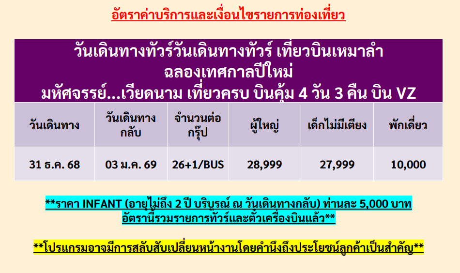 หมวดหมู่ : โดยสายการบิน ,  THAI VIET JET (VZ) ,  ทัวร์เทศกาล ,  ทัวร์ปีใหม่ ,  Vietnam ,  North vietnam ,