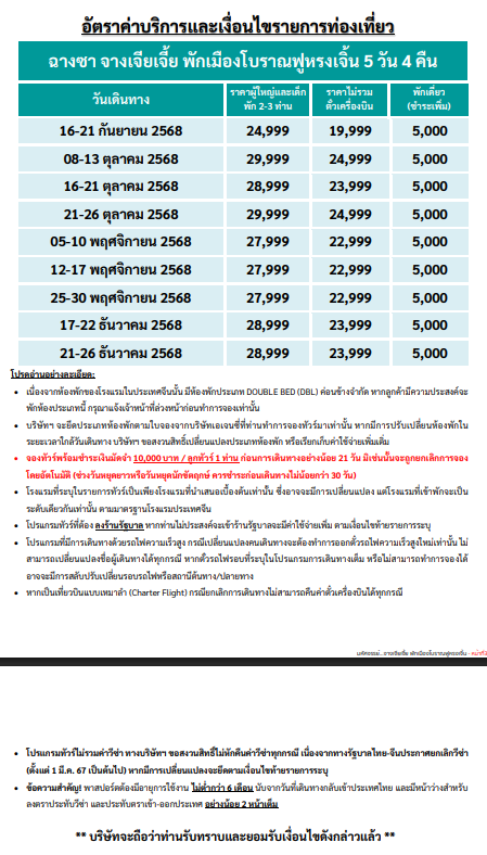 เดินทาง ธ.ค. 68 | โดยสายการบิน THAI LION AIR (SL) | • เมืองฉางซา • สถานีรถไฟความเร็วสูง • เมืองฟูหรงเจิ้น • เมืองโบราณฟูหรงเจิ้น • เมืองจางเจียเจี้ย • ภูเขาเทียนเหมินซาน • ทางเดินกระจกริมผา • ถ้ำประตูสวรรค์ • ตึกมหัศจรรย์ 72 ชั้น • ICE AND SNOW WORLD (เมืองหิมะ) • พิพิธภัณฑ์ภาพวาดหินทราย • OPTION: สะพานแก้วข้ามหุบเขา แกรนด์แคนยอน อุทยานจางเจียเจี้ย • อุทยานจางเจียเจี้ย • เขตอนุรักษ์ธรรมชาติเทียนจื่อซาน • ภูเขาฮัลเลลูย่าห์ • สะพานอันดับหนึ่งใต้ฟ้า • ถนนคนเดินซีปู้เจีย • ผ่านชมหุบเขาป่ายจ้าง • เมืองฉางซา • เกาะส้ม (รวมรถแบตตารี่) • ถนนคนเดินหวงชิงลู่ • OUTLET