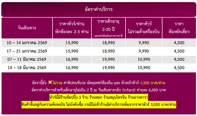 เดินทาง ม.ค.- มี.ค 69 | โดยสายการบิน AIR ASIA (FD) | • เมืองอู่หลง • อุทยานแห่งชาติหลุมฟ้า สะพานสวรรค์ • จุดชมวิวระเบียงแก้ว • ลิฟท์แก้ว • เมืองฉงชิ่ง • รถไฟทะลุตึก • ถนนคนเดินเจี๋ยฟางเป่ย • ย่านหงหยาต้ง • หมู่บ้านโบราณสือชื่อโข่ว • มหาศาลาประชาคม • ไคว่ ชิง โหล • อาคารตะเกียบ • เซียะห่าวหลี่ โอลด์สตรีท