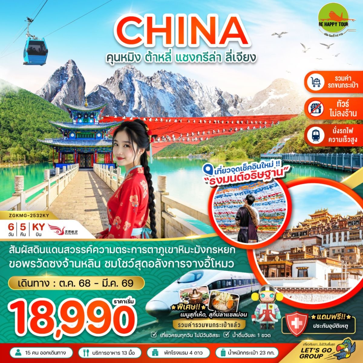 จีน คุนหมิง ต้าหลี่ แชงกรีล่า ลี่เจียง ภูเขาหิมะมังกรหยก (นั่งรถไฟ-ไม่ลงร้าน-รวมรถขนกระเป๋า)(6วัน5คืน)(KY)(NOV-MAR26)