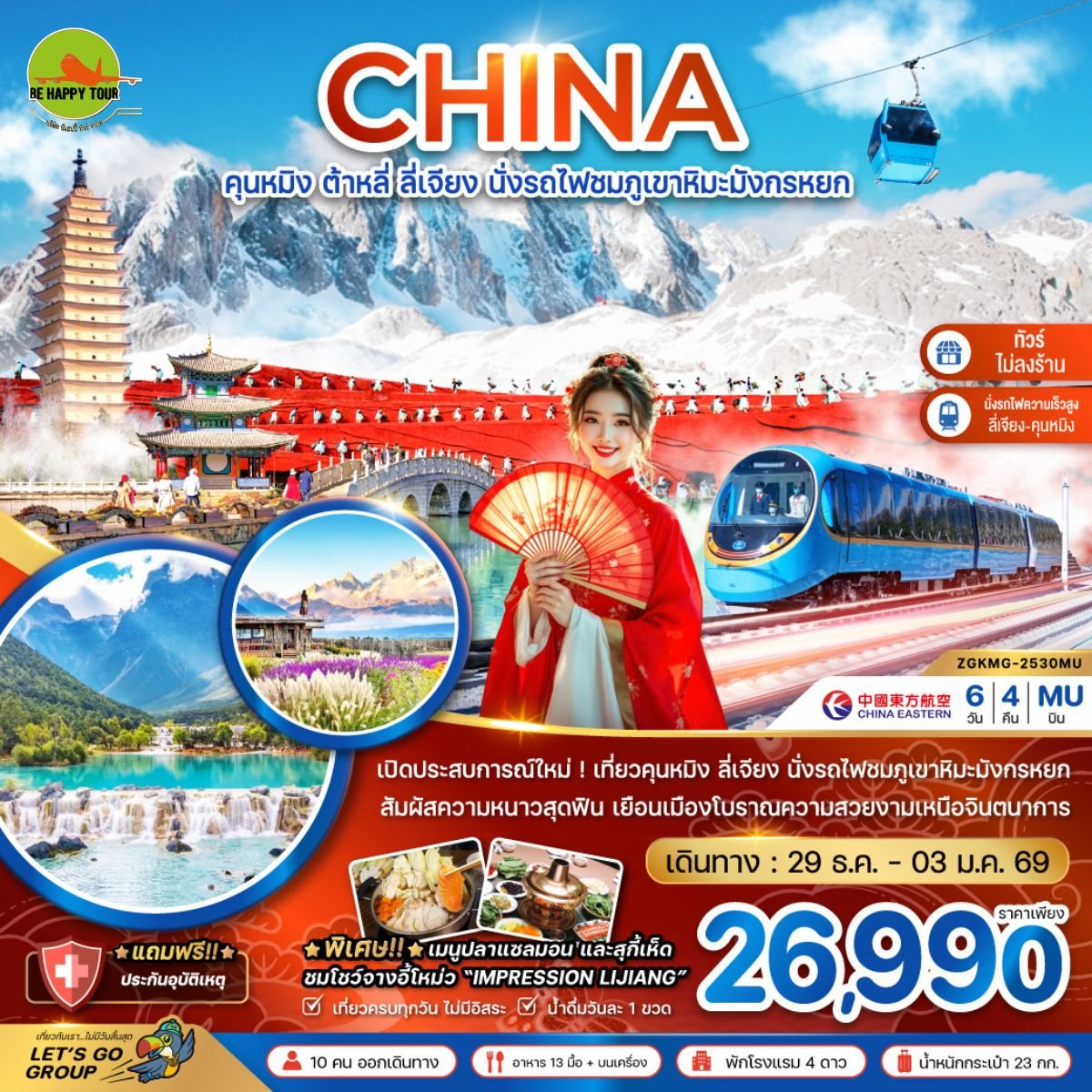 จีน คุนหมิง ต้าหลี่ ลี่เจียง นั่งรถไฟชมภูเขาหิมะมังกรหยก (นั่งรถไฟความเร็วสูง-ไม่ลงร้าน)(6วัน4คืน)(MU)(NEWYEAR26)