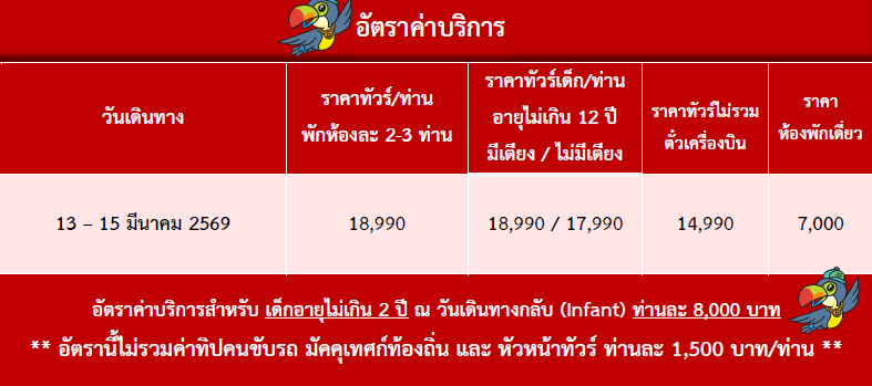 เดินทาง มี.ค 69 | โดยสายการบิน CEMIRATES (EK) | • Avenue of Stars • พิธียืมเงินเจ้าแม่กวนอิม ณ วัดกวนอิมฮ่องฮำ • วัดแชกงหมิว • โรงงานจิวเวอร์รี่ • ร้านหยก • วัดหวังต้าเซียน • รีพัลส์เบย์ • วิคตอเรียพีค • ช้อปปิ้งย่านจิมซาจุ่ย