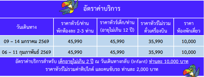 เดินทาง ม.ค. - ก.พ.69 | โดยสายการบินALL NIPPON AIRWAYS (NH) | • ฮาเนดะ • วัดอาซากุสะ • ถนนนาคามิเซ • ภูเขาทาคาโอะ • วัดยาคุโออิน • เทศกาลไฟซากามิโกะ • ทานขาปูยักษ์ อาบน้ำแร่ธรรมชาติ • ทะเลสาบยามานากาโกะ • พิธีชงชาญี่ปุ่น • นาราอิจูกุ • มัตสึโมโตะ • ปราสาทมัตสึโมโตะ • ฮาคุบะ • อิวาทาเกะ กอนโดล่าลิฟท์ Hakuba Iwatage Mountain Resort • อิออน มอลล์ • คาวาโกเอะ • ถนนคุระซึคุริ • หอนาฬิกาโทคิโนะคาเนะ • ตรอกคาชิยะโยโคโช • ชินจูกุ