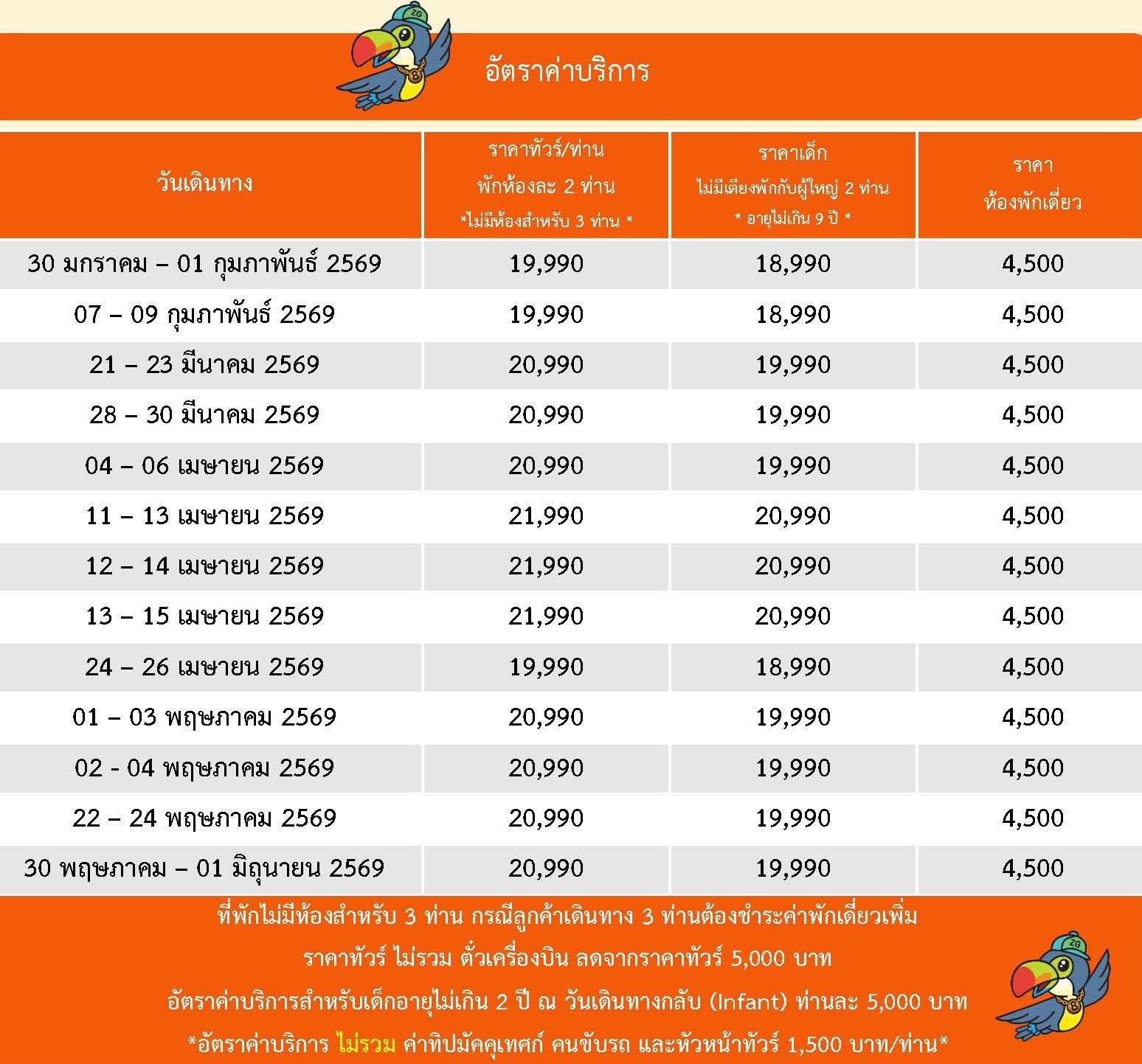 หมวดหมู่ : ทัวร์แนะนำ ,  ประเภททัวร์ ,  มีฟรีเดย์ ,  โดยสายการบิน ,  SINGAPORE AIRLINES (SQ) ,
