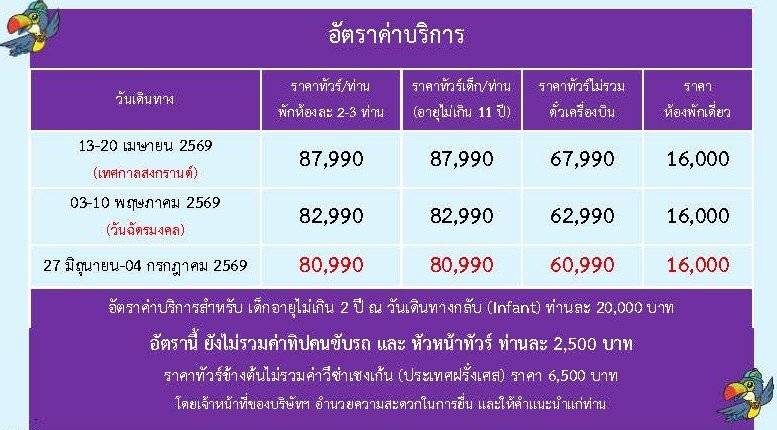 หมวดหมู่ : ทัวร์แนะนำ ,  โดยสายการบิน ,  SINGAPORE AIRLINES (SQ) ,  Europe ,