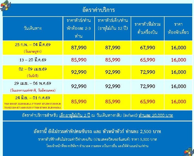 หมวดหมู่ : ทัวร์แนะนำ ,  โดยสายการบิน ,  TURKISH AIRLINES (TK) ,  Europe ,
