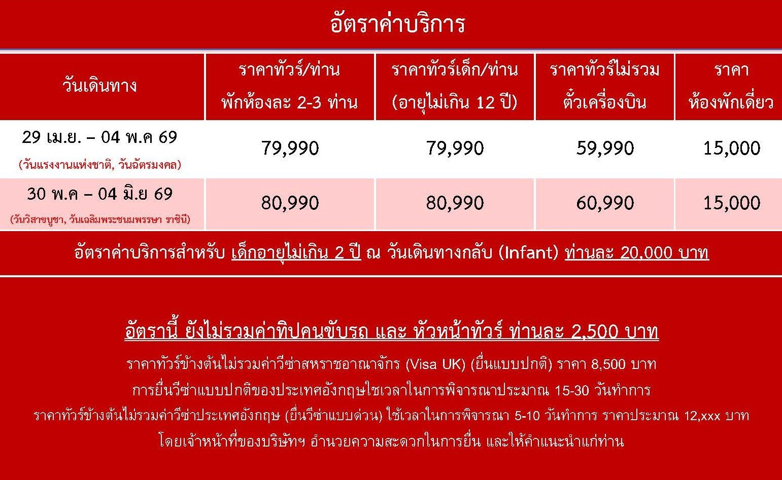 เดินทาง 29 เม.ย. – 04 พ.ค 69 , 30 พ.ค – 04 มิ.ย 69 | โดยสายการบิน EVA AIR (BR) | • เมืองลอนดอน • เมืองซาลิสบัวรี่ • อนุสาวรีย์เสาหินสโตนเฮ้นจ์ • เมืองบาธ • มหาวิหารบาธ • โรงอาบน้ำโรมันโบราณ • หมู่บ้านไบบูลรี่ • เมืองออกซ์ฟอร์ด • มหาวิทยาลัยออกซ์ฟอร์ด • มหาวิหารไครสต์เชิร์ช • ไบเซสเตอร์วิลเลจ • สนามฟุตบอลเอมิเรตส์ สเตเดียม • พระราชวังบัคกิ้งแฮม • จัตุรัสรัฐสภา • พระราชวังเวสท์มินสเตอร์ • หอนาฬิกาบิ๊กเบน • ลอนดอนอาย • พิพิธภัณฑ์บริติช