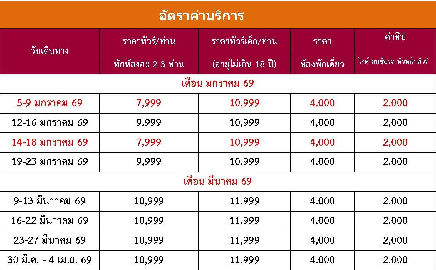เดินทาง ม.ค. - มี.ค. 69 | โดยสายการบิน GUANG BEIBU GULF AIRLINES (GX) | • นครหนานหนิง • วัดขงจื้อ • เมืองหลิ่วโจว • ล่องเรือแพแม่น้ำหลีเจียง • ถนนฝรั่ง • เมืองหยางซั่ว • เมืองลับแล • เมืองกุ้ยหลิน • สวนเจ็ดดาว • ศูนย์แพทย์แผนจีน • ชมการแสดง THE MIRAGE เจดีย์เงิน เจดีย์ทอง • ช้อปปิ้งย่านถนนคนเดิน • เขางวงช้าง • ศูนย์จำหน่ายหยก • ท่าศาลา