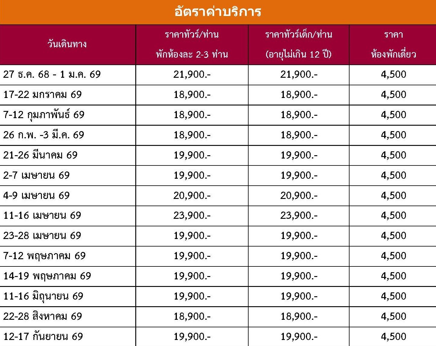เดินทาง ก.พ. - ธ.ค. 69 | โดยสายการบิน 9AIR (AQ) | • เมืองกุ้ยหยาง • ถนนคนเดินชิงหยุน • เมืองโบราณชิงเหยียน • สะพานฮัวเจียง • น้ำตกหวงกั่วซู่ประดับไฟ • เมืองอันซุ่น • โรงถ่ายทำภาพยนตร์ตูหยุน • ถนนหินโบราณ • อุทยานธรรมชาติเสี่ยวชีข่ง (จิ่วจ้ายโกวแห่งกุ้ยโจว) • หมู่บ้านม้งคาลา • เมืองตันจ้าย • อุทยานวูเจียงจ้าย