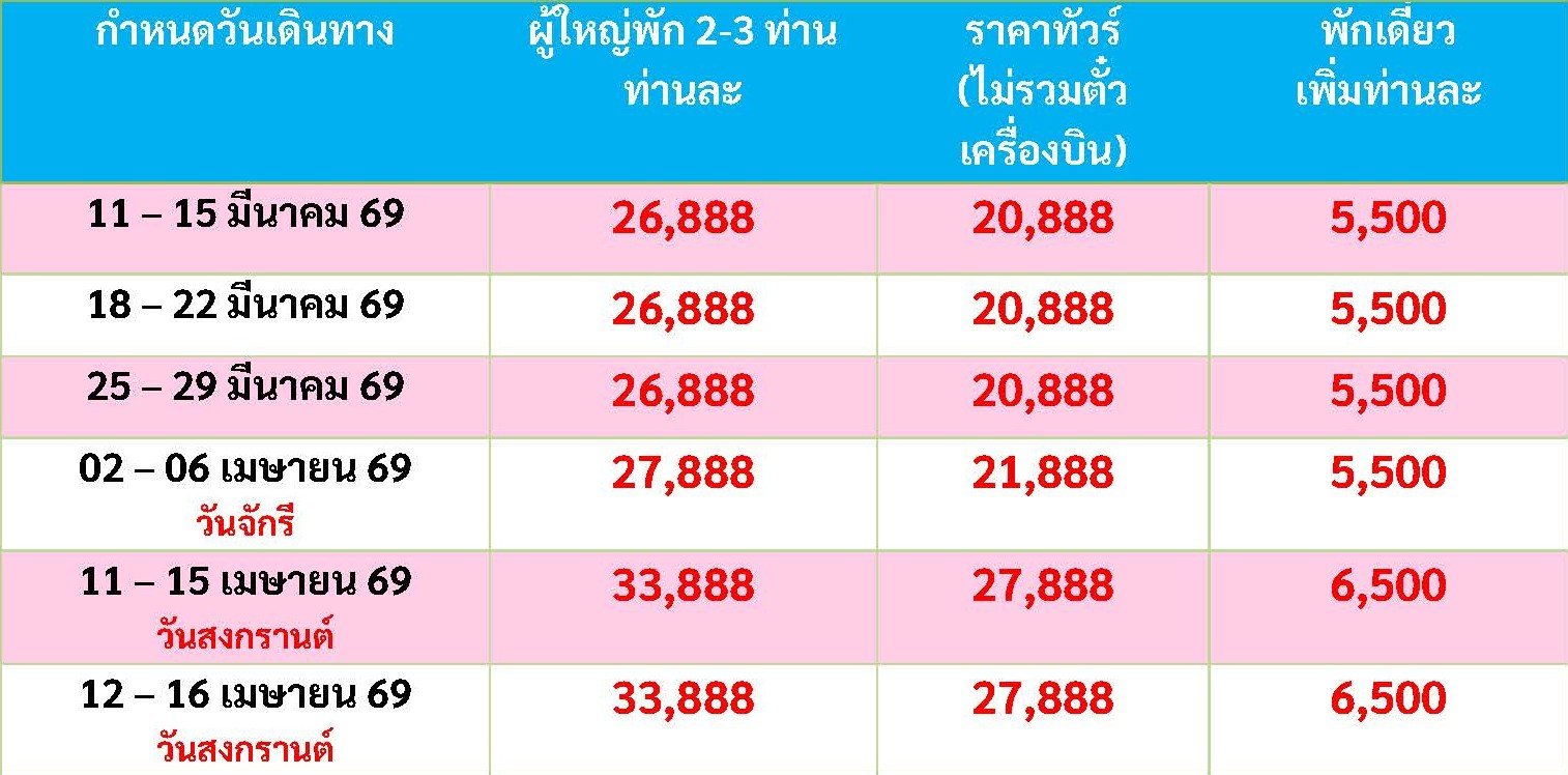 เดินทาง มี.ค. - เม.ย. 69 | โดยสายการบิน AIR CHINA (CA) | • กรุงปักกิ่ง • จัตุรัสเทียนอันเหมิน • พระราชวังโบราณกู้กง • ซากุระสวนหยูหยวนถาน • ถนนหวังฝูจิ่ง • UNIVERSAL STUDIO BEIJING • กำแพงเมืองจีนด่านจวียงกวน • พระราชวังฤดูร้อนอวี้เหอหยวน • ย่านซานหลี่ถุน • หอฟ้าเทียนถาน • วัดลามะ
