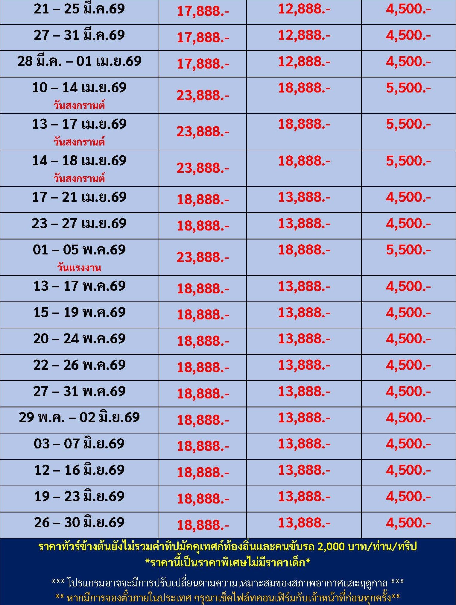 เดินทาง มี.ค. - มิ.ย. 69 | โดยสายการบิน THAI LION AIR (SL) | • อุทยานปี้เผิงโกว • เมืองตูเจียงเยี่ยน • อุทยานสี่ดรุณี • ศูนย์อนุรักษ์หมีแพนด้า • จตุรัสหยางเทียนหวู่ • รูปปั้นหมีแพนด้า • ร้านหนังสือจงซูเก๋อ • เมืองเฉิงตู • ถนนโบราณซอยกว้างซอยแคบ • วัดต้าฉือ • ถนนคนเดินซุนซีลู่ • หมีแพนด้าปีนตึกIFS • ถนนไท่กู๋หลี่ • ช้อปปิ้ง Chengdu Times Outlets