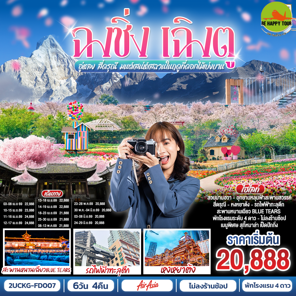 2UCKG-FD007 ฉงชิ่ง เฉิงตู อู่หลง สี่ดรุณี มนต์เสน่ห์เสฉวนในฤดูที่ดอกไม้เบ่งบาน (6 วัน 4 คืน)(FD)(APR-JUN26)