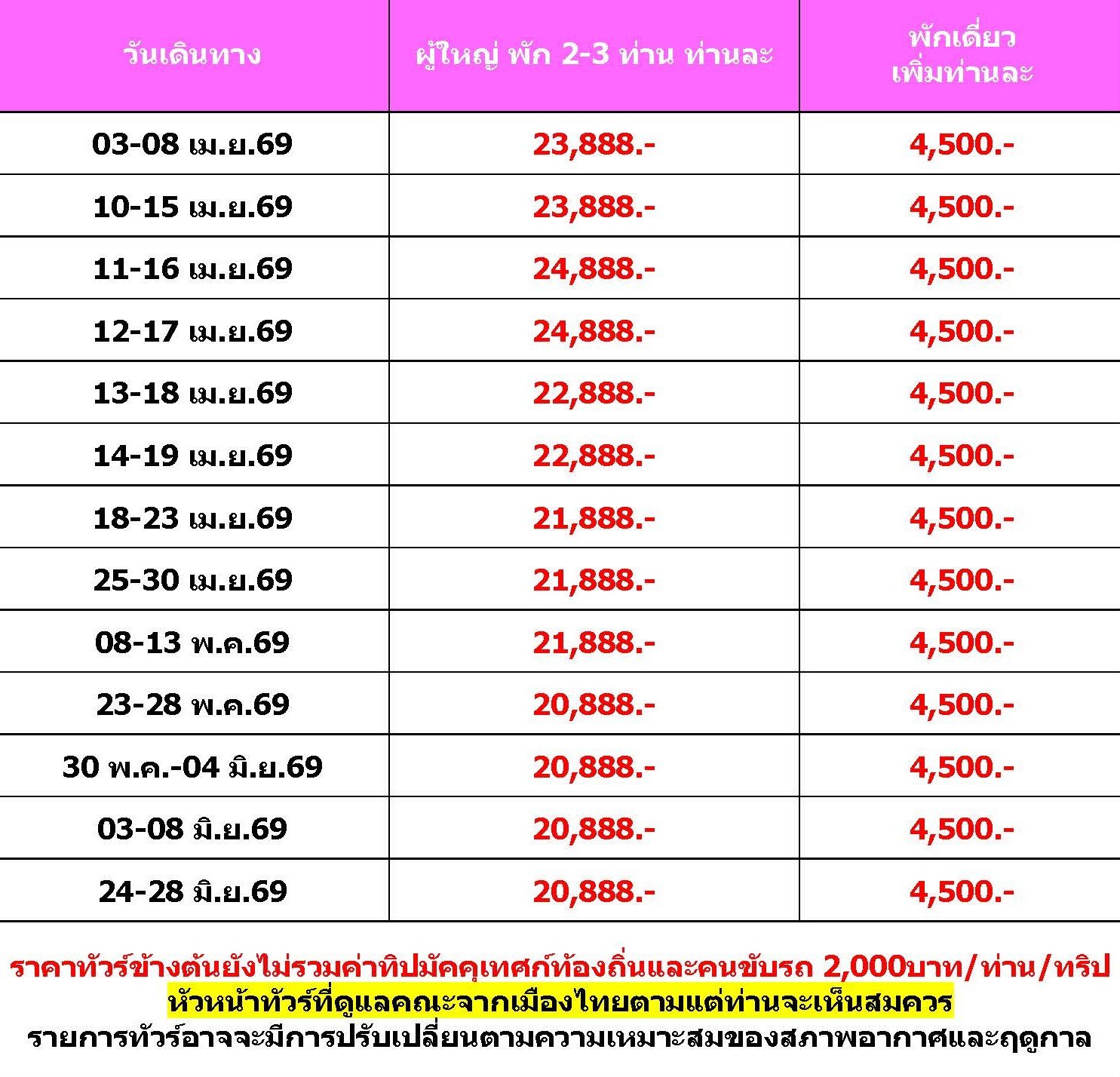 เดินทาง เม.ย. - มิ.ย. 69 | โดยสายการบิน AIR ASIA (FD) | • ฉงชิ่ง • วัดหลัวฮั่น • เมืองโบราณฉื่อชีโข่ว • อู่หลง • อุทยานเขานางฟ้า • อุทยานหลุมบ่อฟ้า • สะพานสวรรค์ • จุดชมวิวระเบียงแก้ว • ชมวิวหงหยาต้ง • ศาลาประชาคม • ตูเจียงเยี่ยน • สี่ดรุณี • จตุรัสหย่างเทียนวู่ • รูปปั้นแพนด้าเซลฟี่ • ชมเทศกาลดอกไม้ตามฤดูกาล สวน MANHUA • วัดต้าฉือ • ถนนคนเดินชุนซีลู่ • ถนนไท่กู่หลี่
