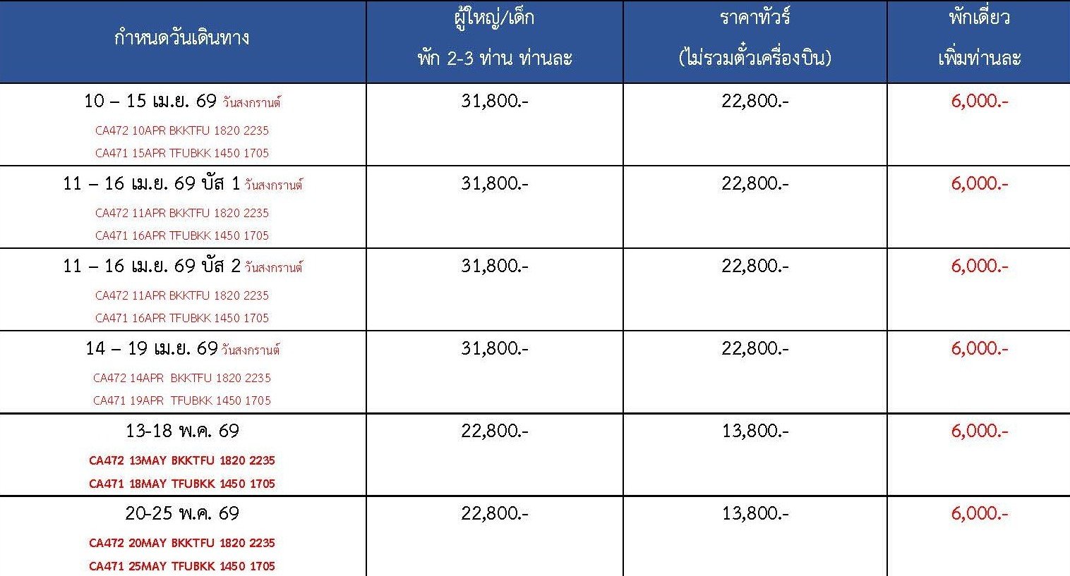 หมวดหมู่ : ประเภททัวร์ ,  ทัวร์แนะนำ ,  โดยสายการบิน ,  AIR CHINA (CA) ,  China ,