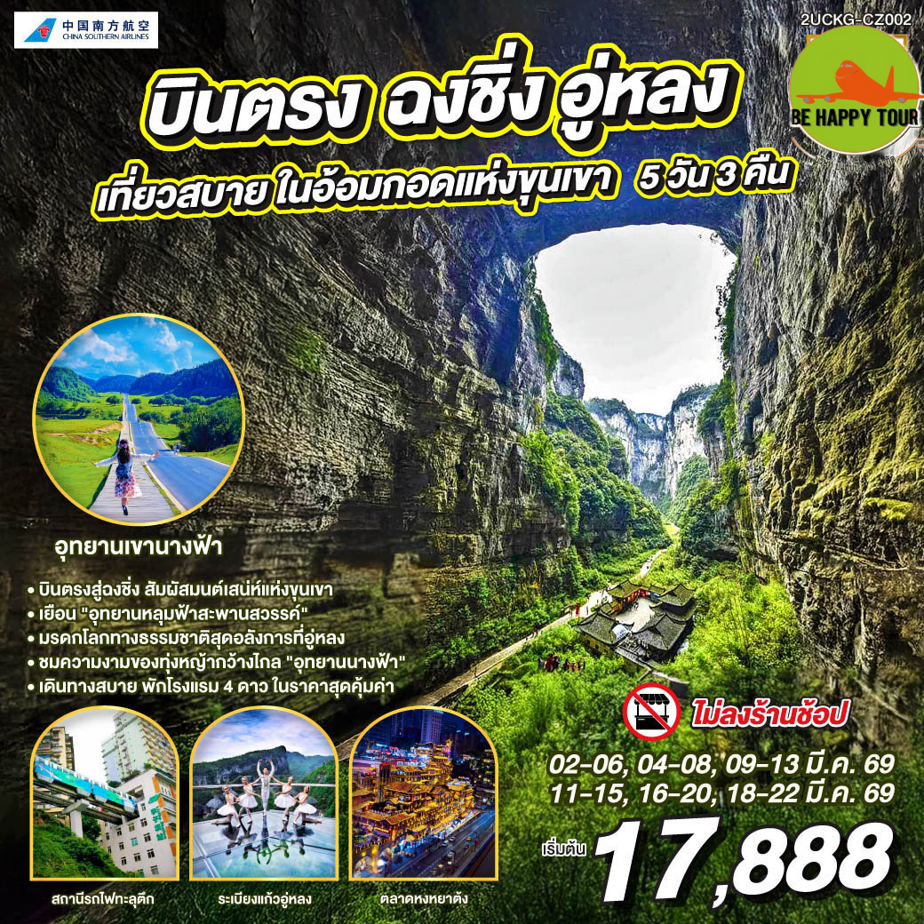 2UCKG-CZ002 บินตรงฉงชิ่ง อู่หลง เที่ยวสบาย ในอ้อมแห่งกอดขุนเขา (5 วัน 3 คืน)(CZ)(MAR26)
