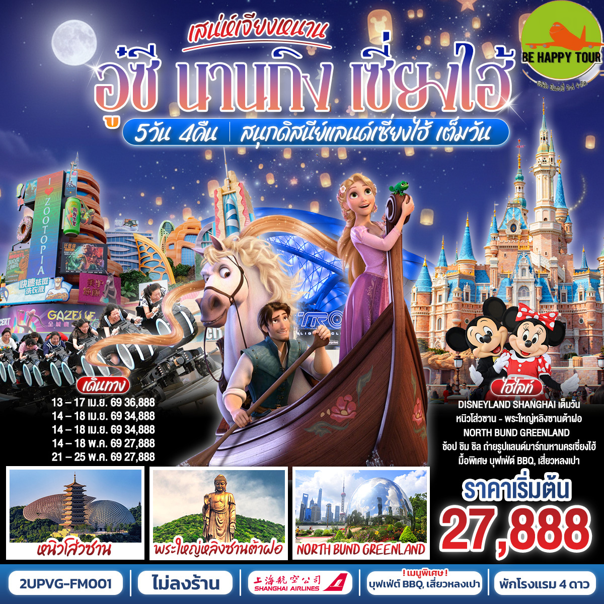 เดินทาง เม.ย. - พ.ค. 69 | โดยสายการบิน SHANGHAI AIRLINE (FM) | • อู๋ซี • วัดพระใหญ่หลิงซานต้าฝอ • ศาลาฝานกง • นานกิง • จัตุรัสเต๋อจี • แม่น้ำฉินหวย • เขาหนิวโส่วซาน • วัดจีหมิง • ทะเลสาบเสวียนอู่ • นานกิง • เซี่ยงไฮ้ • สวนสนุกเซี่ยงไฮ้ดิสนีย์แลนด์ • ตึกเรือ LV • ถนนนานกิง+POPMART • Florentia Village Outlet
