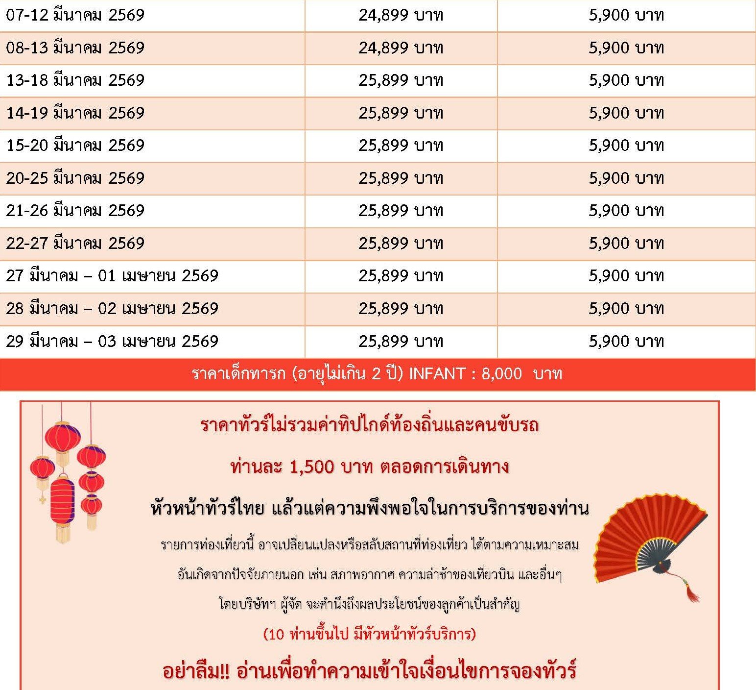 CVZTFU2 เฉิงตู สี่ดรุณี จิ่วจ้ายโกว หวงหลง (ไม่ลงร้าน)(6 วัน 5 คืน)(VZ)(OCT25-MAR26)