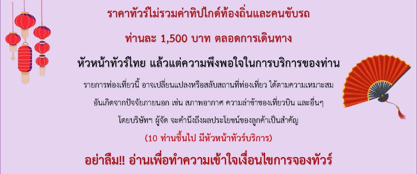 หมวดหมู่ : ประเภททัวร์ ,  ทัวร์แนะนำ ,  โดยสายการบิน ,  THAI VIET JET (VZ) ,  China ,