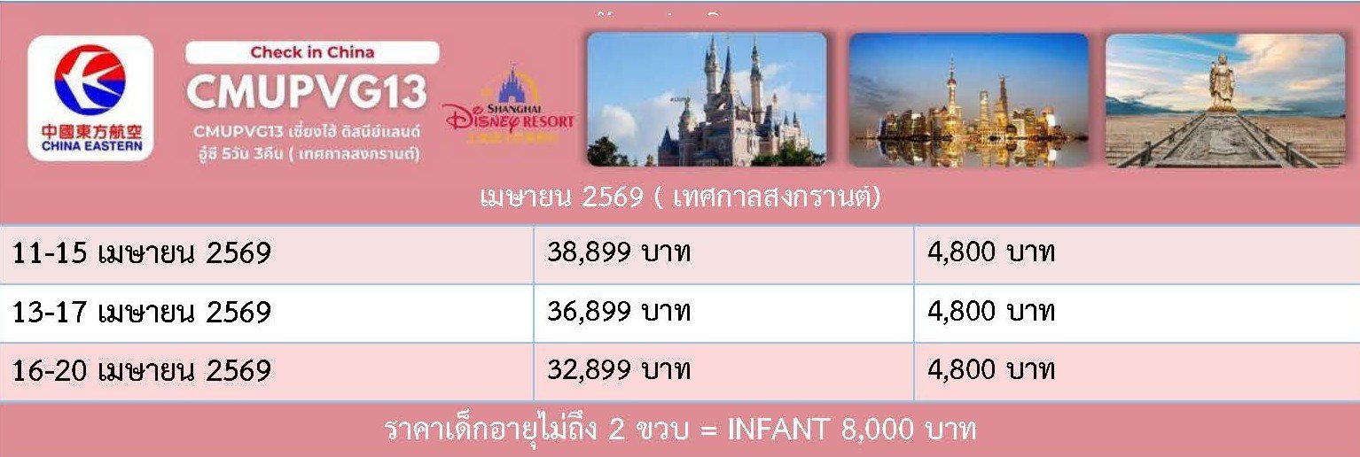 CMUPVG13 เซี่ยงไฮ้-อู๋ซี-ดิสนี่ย์แลนด์ (5D3N)(MU)(SONGKRAN26)