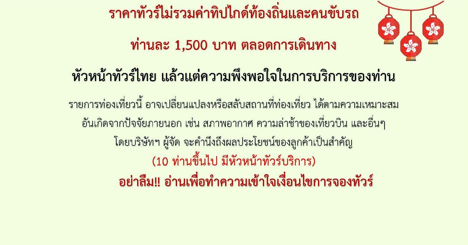 หมวดหมู่ : ประเภททัวร์ ,  ทัวร์แนะนำ ,  โดยสายการบิน ,  CATHAY PACIFIC (CX) ,  Hong Kong ,