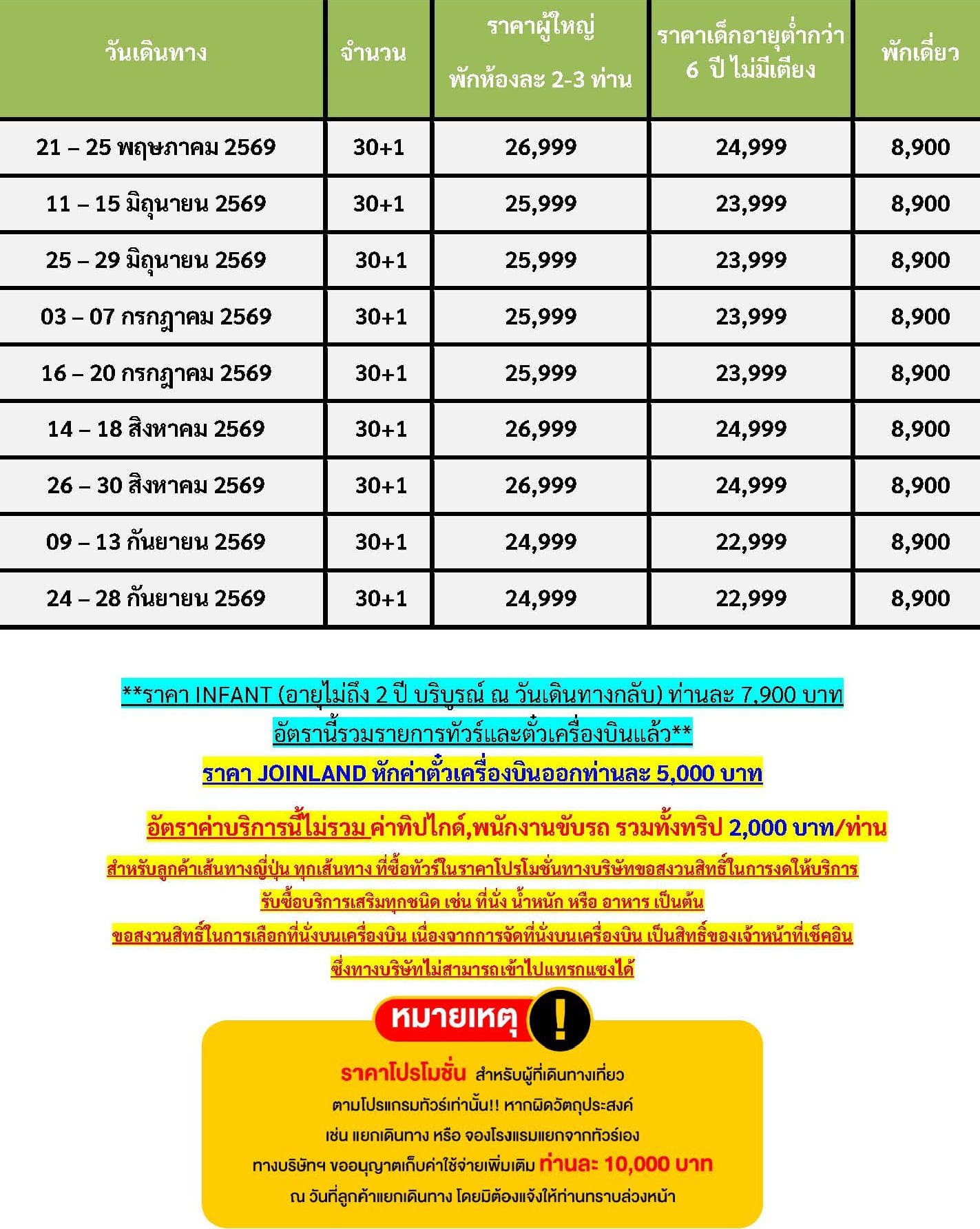 หมวดหมู่ : ประเภททัวร์ ,  ทัวร์แนะนำ ,  โดยสายการบิน ,  AIR ASIA X (XJ) ,  Japan ,
