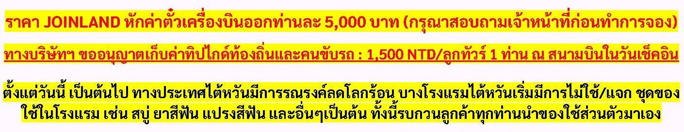 หมวดหมู่ : ประเภททัวร์ ,  ทัวร์แนะนำ ,  โดยสายการบิน ,  THAI VIET JET (VZ) ,  Taiwan ,