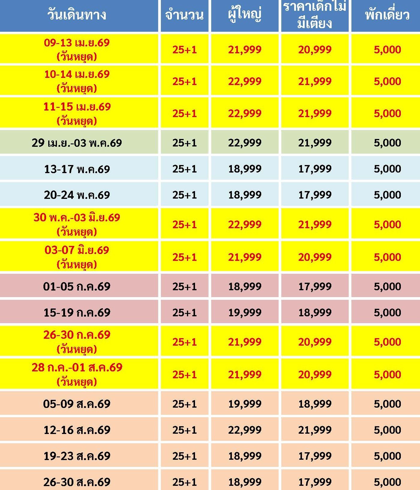 หมวดหมู่ : ประเภททัวร์ ,  ทัวร์แนะนำ ,  โดยสายการบิน ,  THAI LION AIR (SL) ,  Taiwan ,