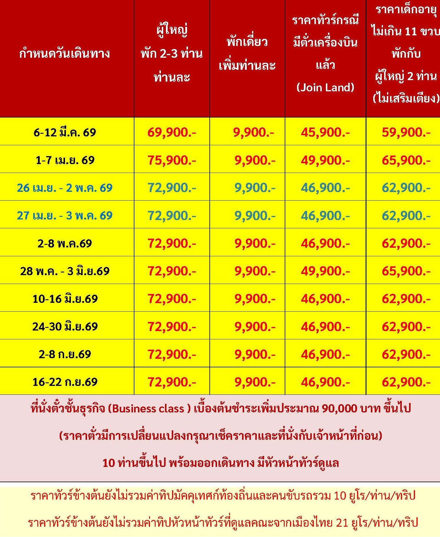 เดินทาง เม.ย. - ก.ย. 69 | โดยสายการบิน EMIRATES (EK) | • เวียนนา • ถนนคาร์ทเนอร์ • ฮัลสตัท • มิวนิค • โรเซนไฮม์ • อินส์บรุค • วาดุซ • ซูริค • ทะเลสาบเบรียนซ์ • ขึ้นกระเช้าสู่ยอดเขาชิลธอร์น • หมู่บ้านเลาเทอร์ • บรุนเน่น • อินเทอร์ลาเกน • ขึ้นกระเช้าสู่ยอดเขาชิลธอร์น • หมู่บ้านเลาเทอร์บรุนเน่น • อินเทอร์ลาเกน