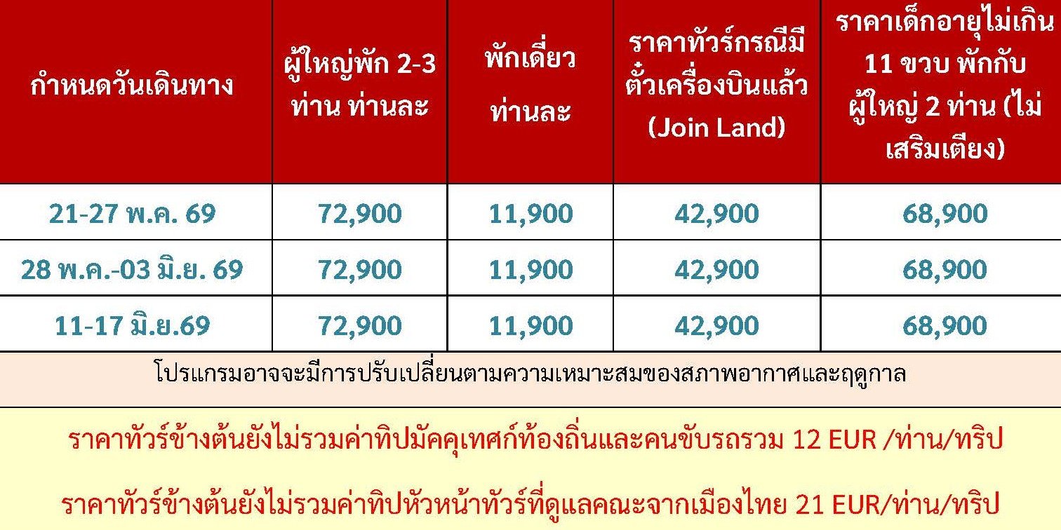หมวดหมู่ : ประเภททัวร์ ,  ทัวร์แนะนำ ,  โดยสายการบิน ,  EVA AIR (BR) ,  Europe ,