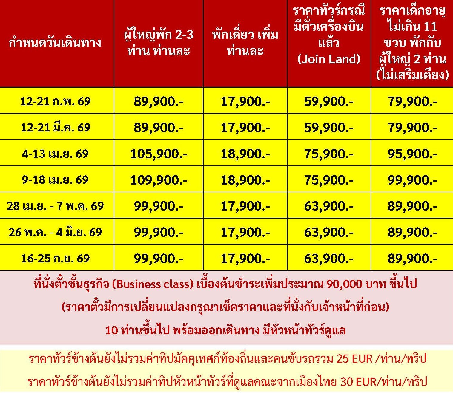 หมวดหมู่ : ประเภททัวร์ ,  ทัวร์แนะนำ ,  โดยสายการบิน ,  EMIRATES (EK) ,  Europe ,