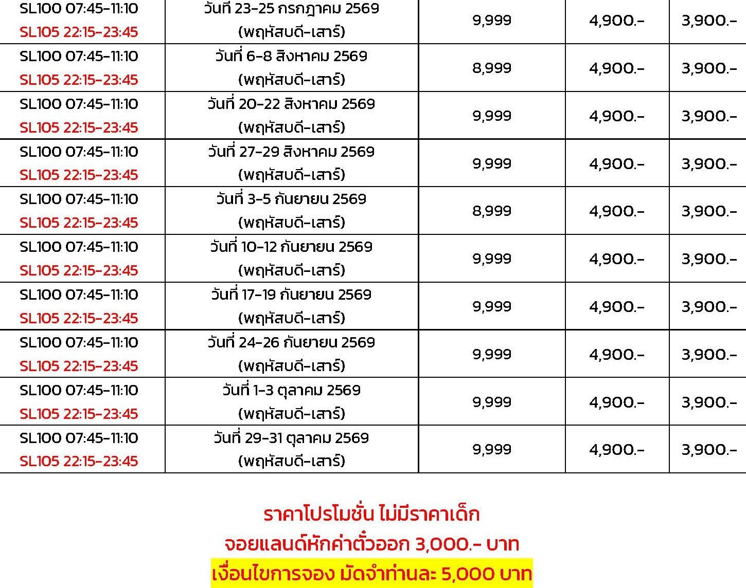 เดินทาง มี.ค. - ต.ค. 69 | โดยสายการบิน THAI LION AIR (SL) | • วัดพระเขี้ยวแก้ว • เมอร์ไลอ้อน • การ์เต้น บาย เดอะเบย์ • คลากคีย์ • มาริน่า เบย์ แซน • ชมโชว์ Wonder Full Light • FORT CANNING PARK • วัดเจ้าแม่กวนอิม • Fountain of wealth • ช้อปปิ้งย่านถนนนออร์ชาร์ด • Loyang Tua Pek Kong • THE JEWEL CHANGI