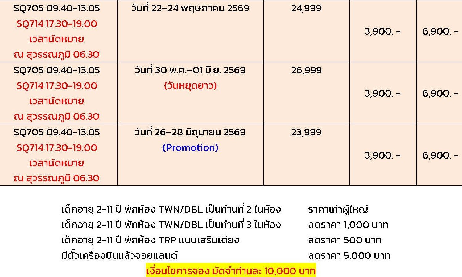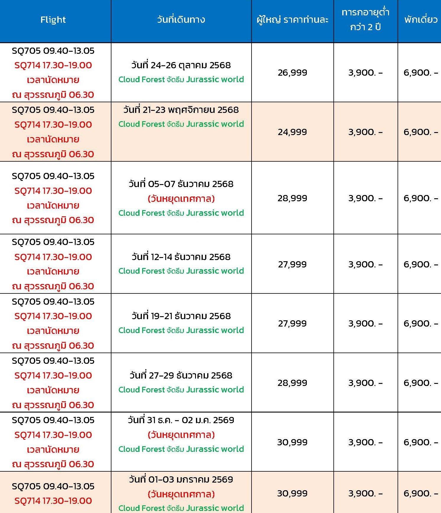เดินทาง มี.ค. - มิ.ย. 69 | โดยสายการบิน SINGAPORE AIRLINES (SQ) | • การ์เด้น บาย เดอะเบย์ Flower Dome • Cloud Forest • Bumboat • มาริน่า เบย์ แซน • Singapore Oceanarium • UNIVERSAL STUDIO • ช้อปปิ้งถนนออร์ชาร์ด • เมอร์ไลอ้อน • ไซน่าทาวน์ • น้ำพุแห่งความมั่งคั่ง • THE JEWEL CHANGI