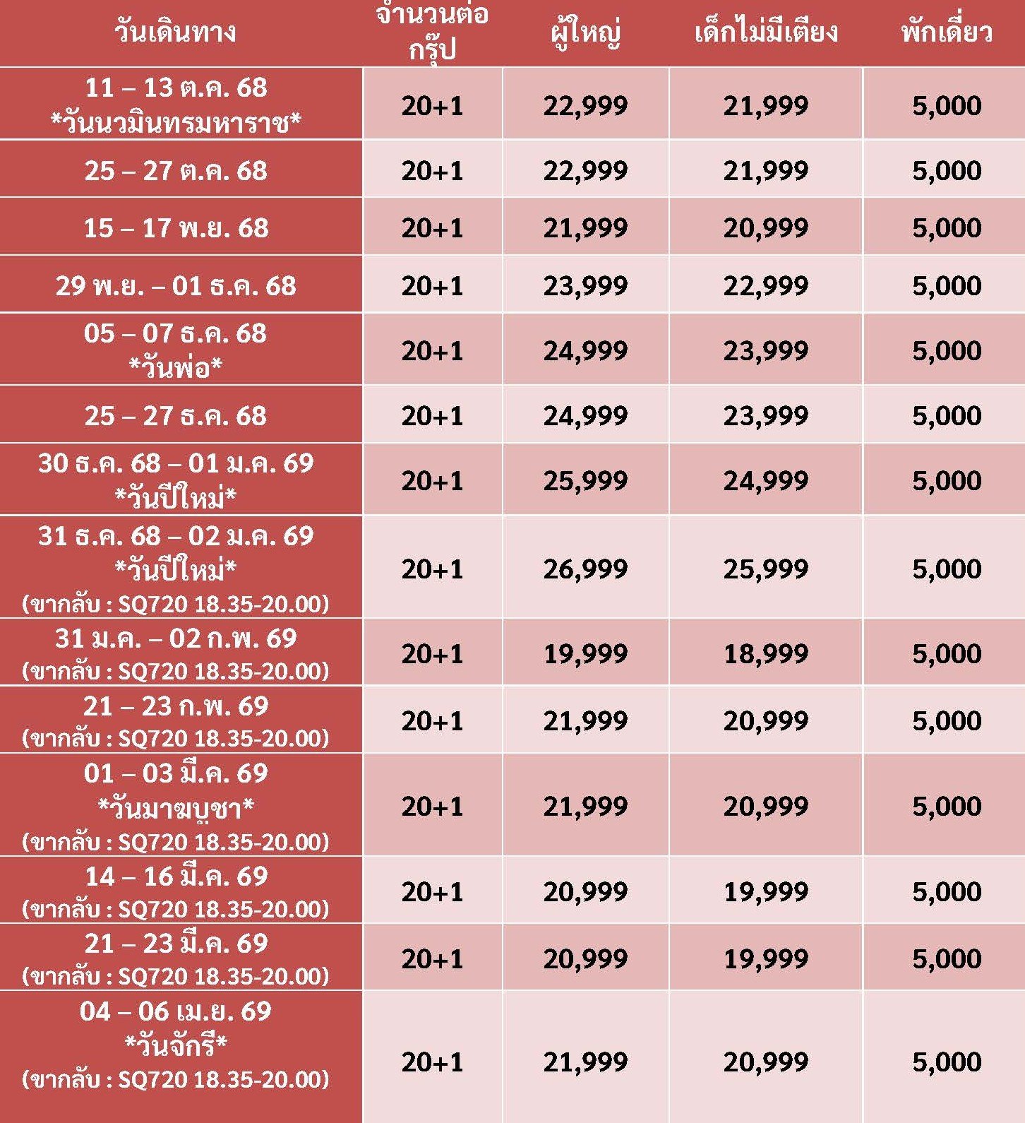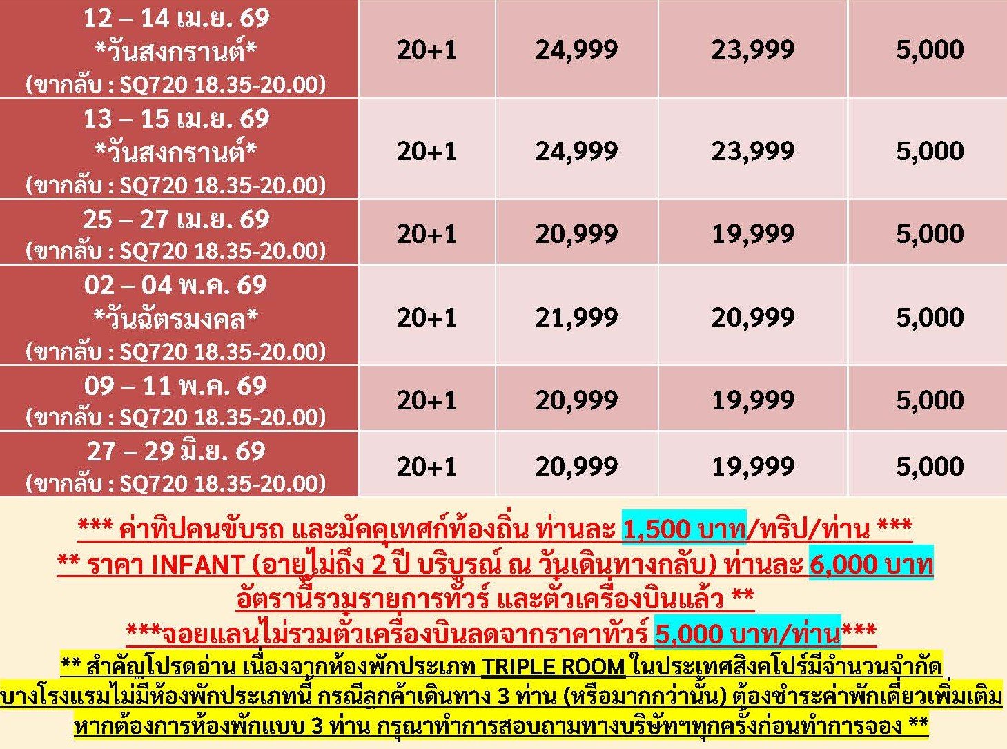 หมวดหมู่ : ประเภททัวร์ ,  ทัวร์แนะนำ ,  โดยสายการบิน ,  SINGAPORE AIRLINES (SQ) ,  Singapore ,
