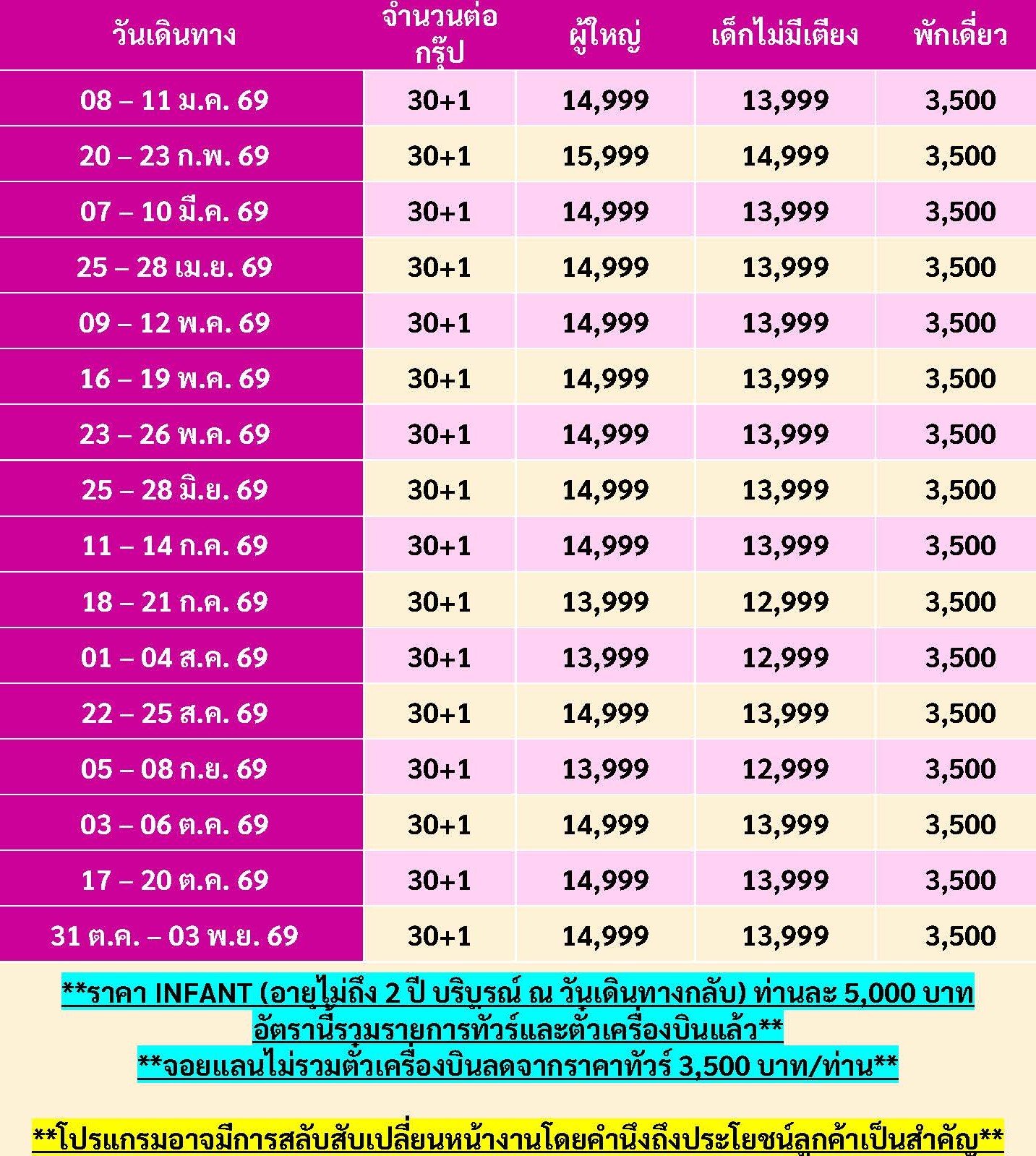 เดินทาง เม.ย. - พ.ย. 69 | โดยสายการบิน AIR ASIA (FD) | • ดานัง เวียดนาม • Wonder Park • สะพานมังกร • Apec Park • หาดหมีเคว • สระผมสไตล์เวียดนาม • ร้านเยื่อไผ่ • บาน่าฮิลล์เต็มวัน • นั่งกระเช้าไฟฟ้าขึ้นสู่บาน่าฮิลล์ • สะพานมือสีทอง • สวนสนุกแฟนตาซี • หมู่บ้านฝรั่งเศส • โซนใหม่ Eclipse Square • ร้านหินอ่อน • หมู่บ้านกั๊มทาน • นั่งเรือกระด้ง • เมืองโบราณฮอยอัน • ล่องเรือลอยกระทง • วัดลินห์อึ๋ง • Café Son Tra Marina • ร้านผ้าไหม • ตลาดฮาน