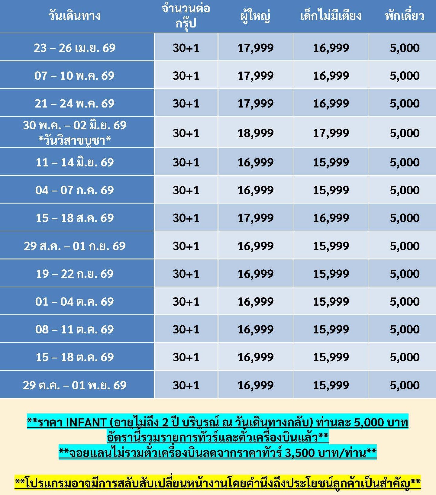 เดินทาง เม.ย. - ต.ค. 69 | โดยสายการบิน AIR ASIA (FD) | • ดานัง เวียดนาม • เว้ • เจดีย์เทียนมู่ • พระราชวังเว้ • นั่งสามล้อซิโคล่ • ล่องเรือแม่น้าหอม • สุสานกษัตริย์ไคดิงห์ • ร้านเยื่อไผ่ • บาน่าฮิลล์ • สะพานมือสีทอง • สวนสนุกแฟนตาซี • หมู่บ้านฝรั่งเศส • โซนใหม่ Eclipse Square Apeck Park • สะพานมังกร • ร้านหินอ่อน • หมู่บ้านกั๊มทาน • นั่งเรือกระด้ง • เมืองโบราณฮอยอัน • วัดลินห์อึ๋ง • Café Son TraMarina • ร้านผ้าไหม • ตลาดฮาน