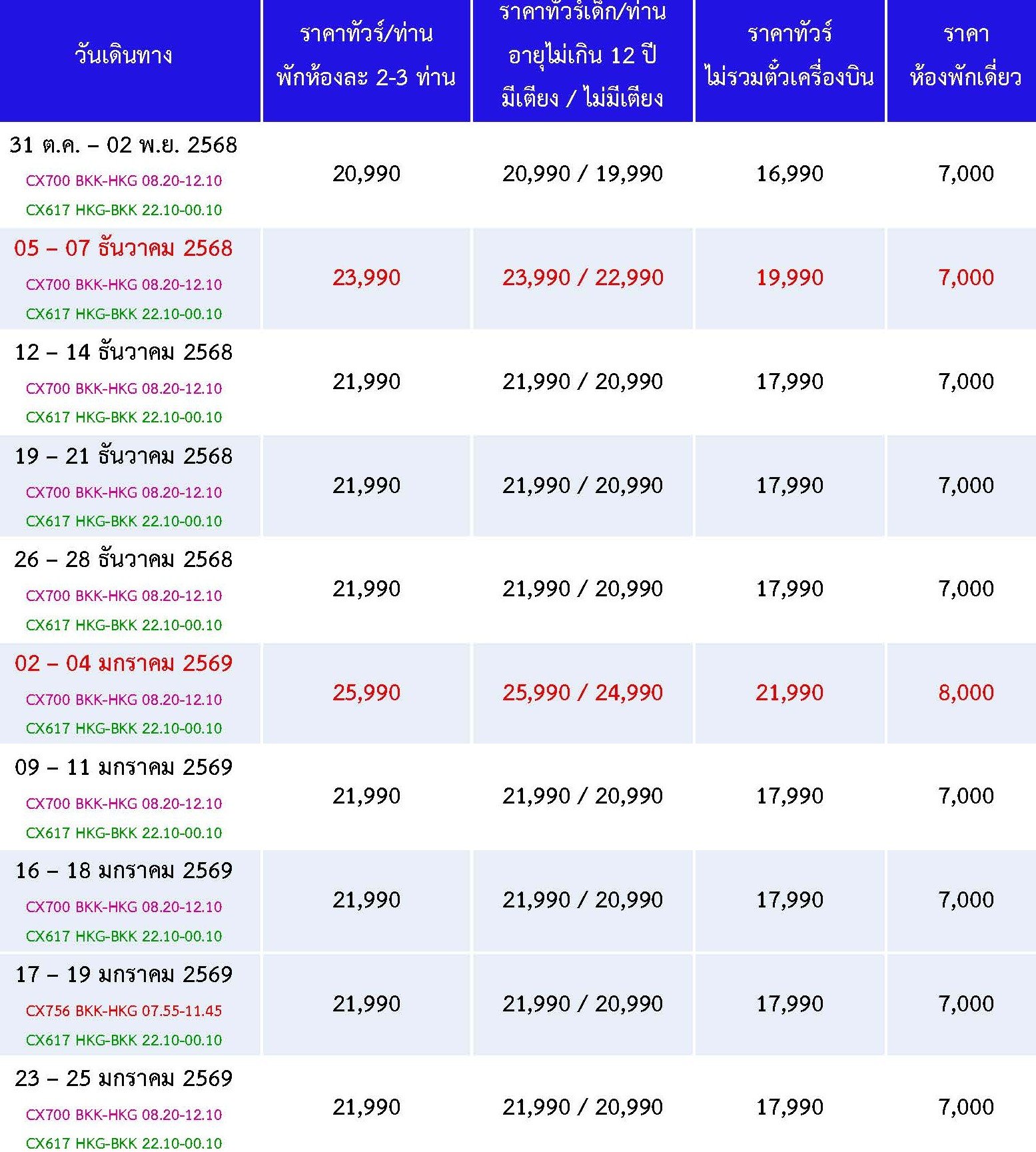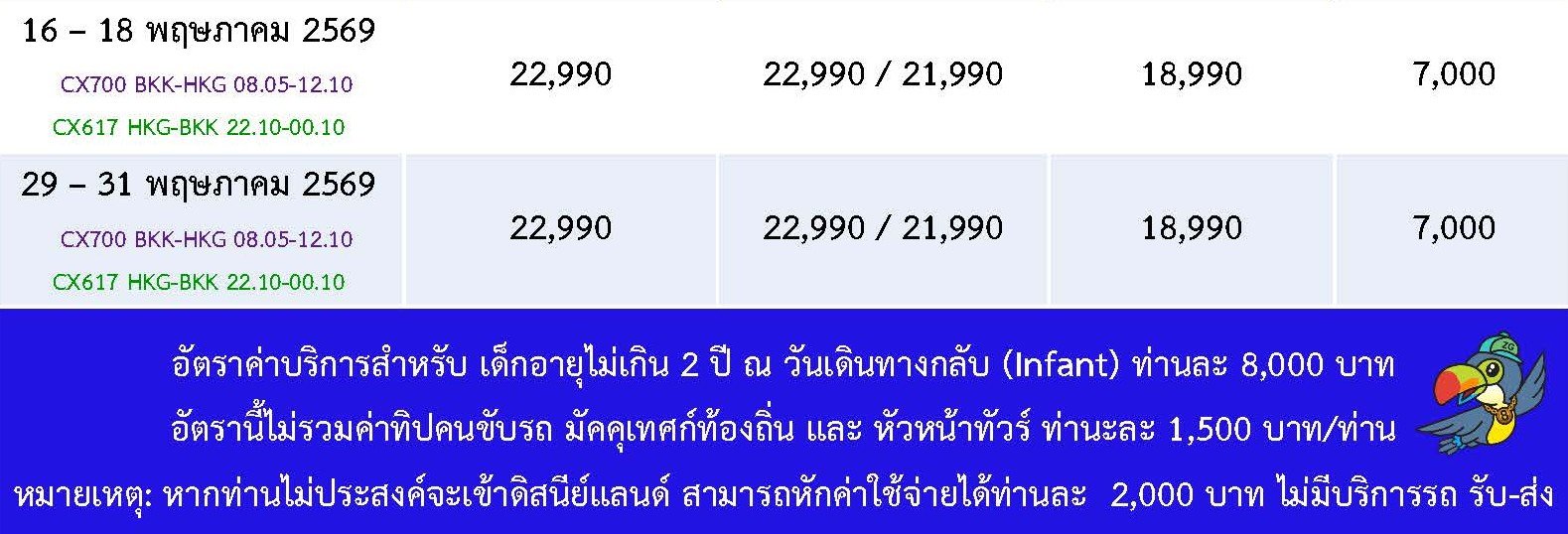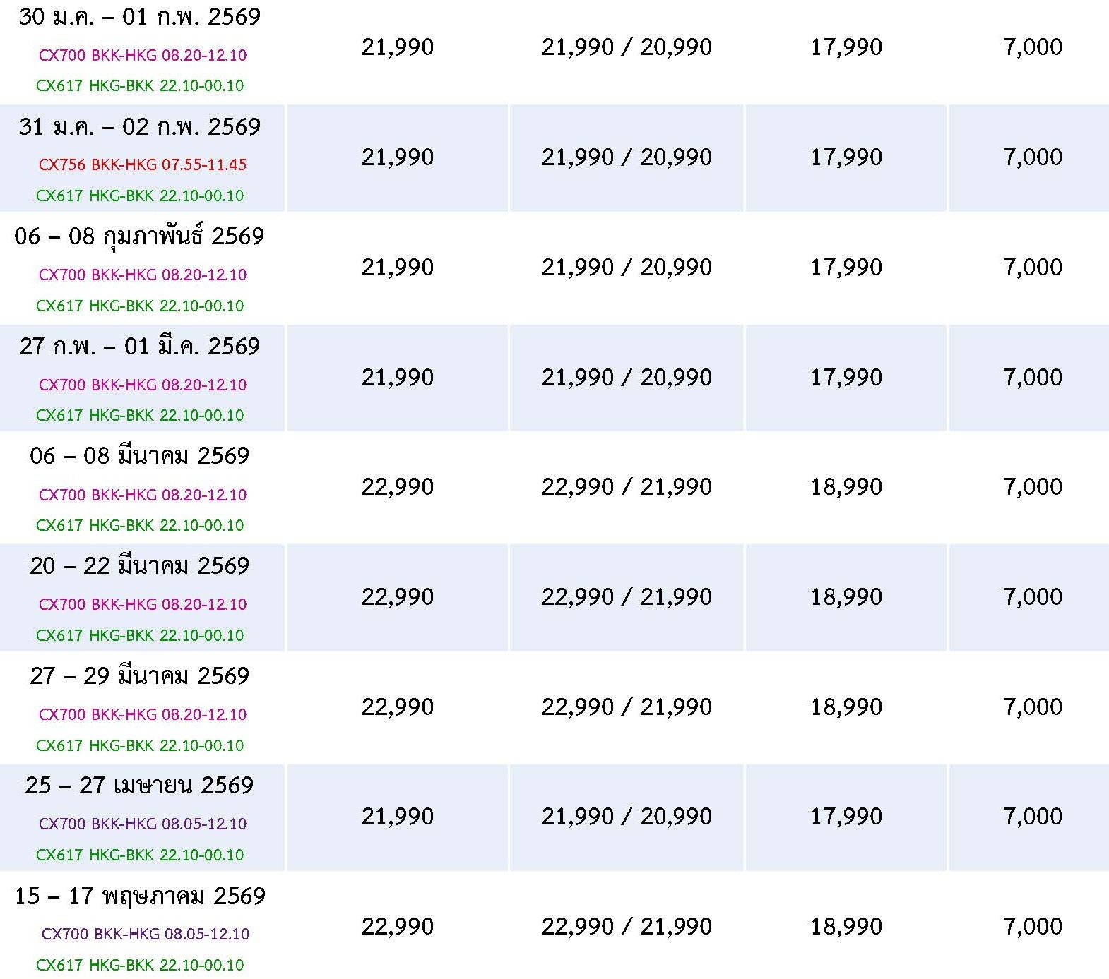 หมวดหมู่ : ประเภททัวร์ ,  ทัวร์แนะนำ ,  โดยสายการบิน ,  CATHAY PACIFIC (CX) ,  Hong Kong ,